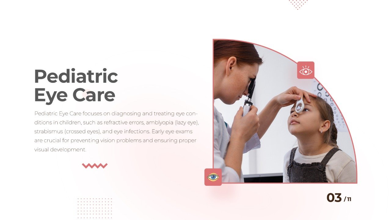 - Refractive errors in children — myopia, hyperopia, and astigmatism, which can affect learning and development